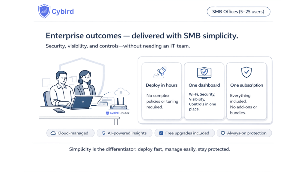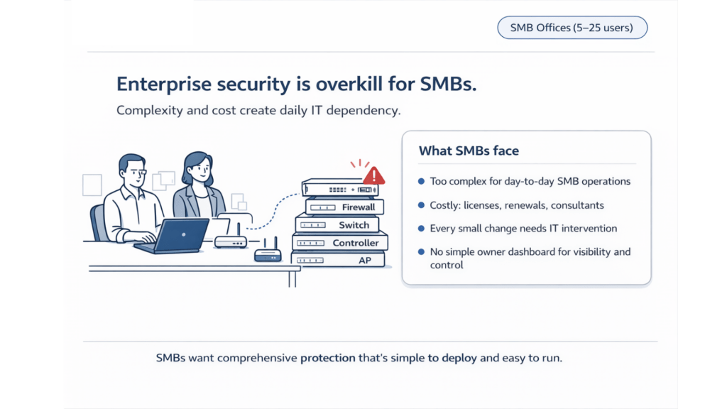 Bottom line: Enterprise firewalls deliver strong capability, but many SMB offices need right-sized security that’s easier to run.