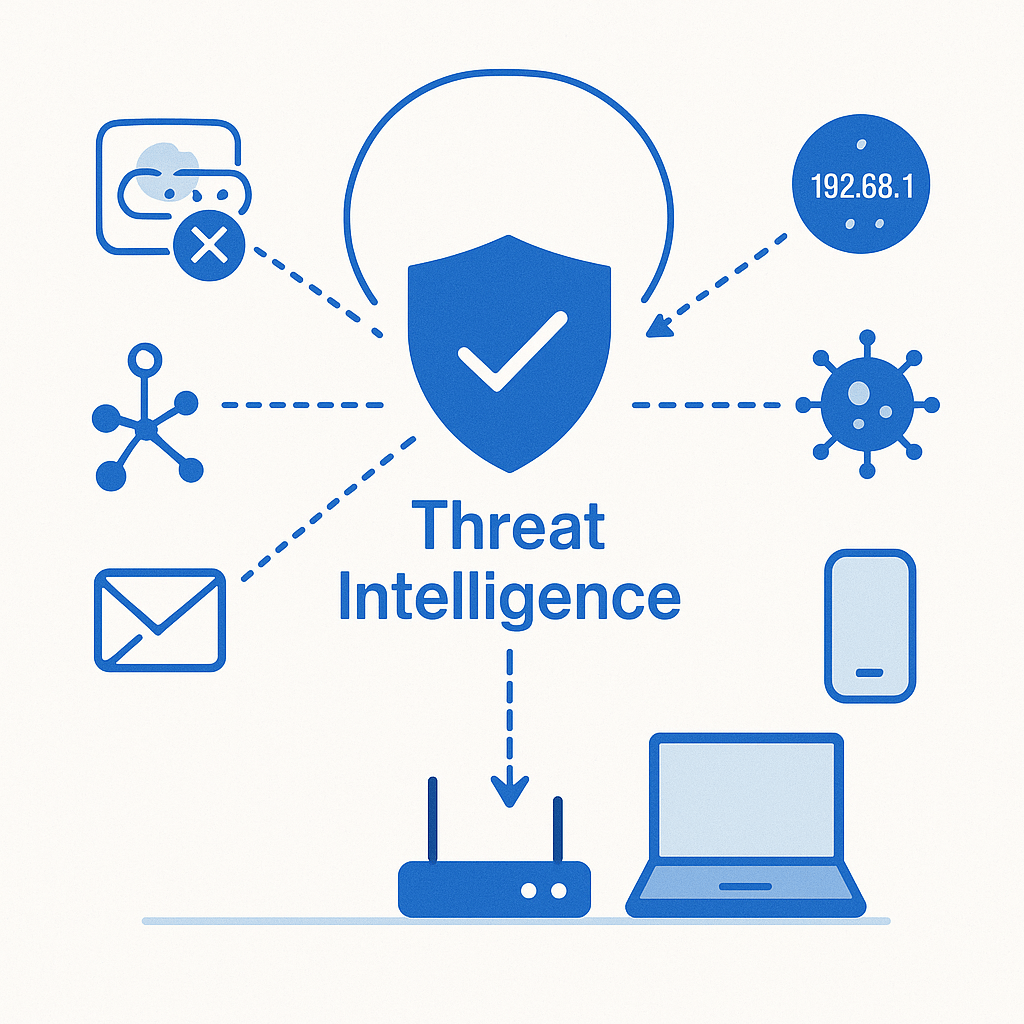Think of threat intelligence as a live, global “bad stuff” list that your security tools use to protect you.